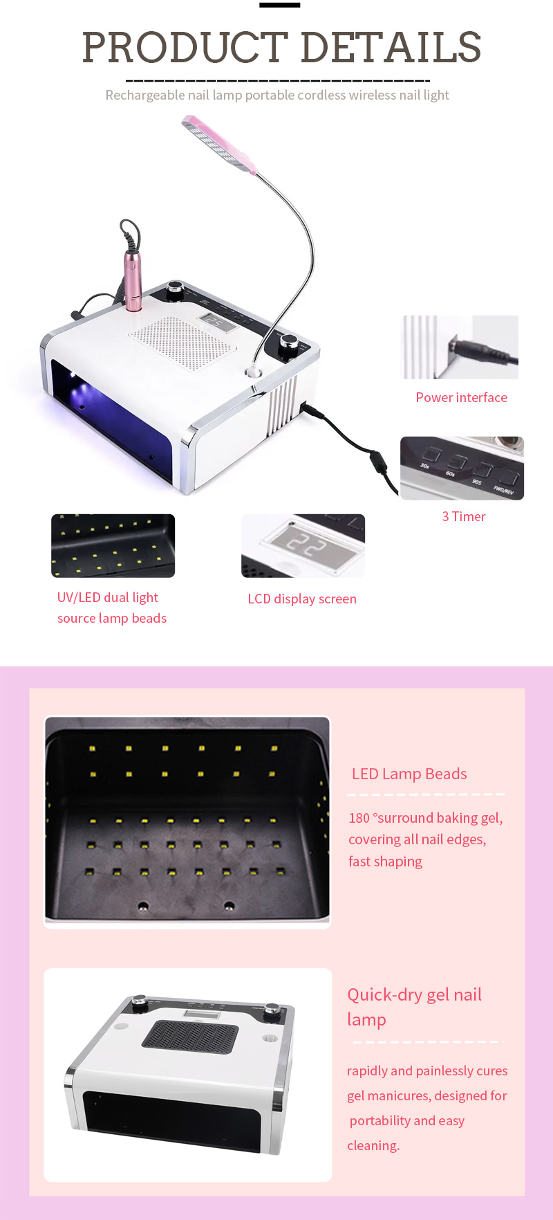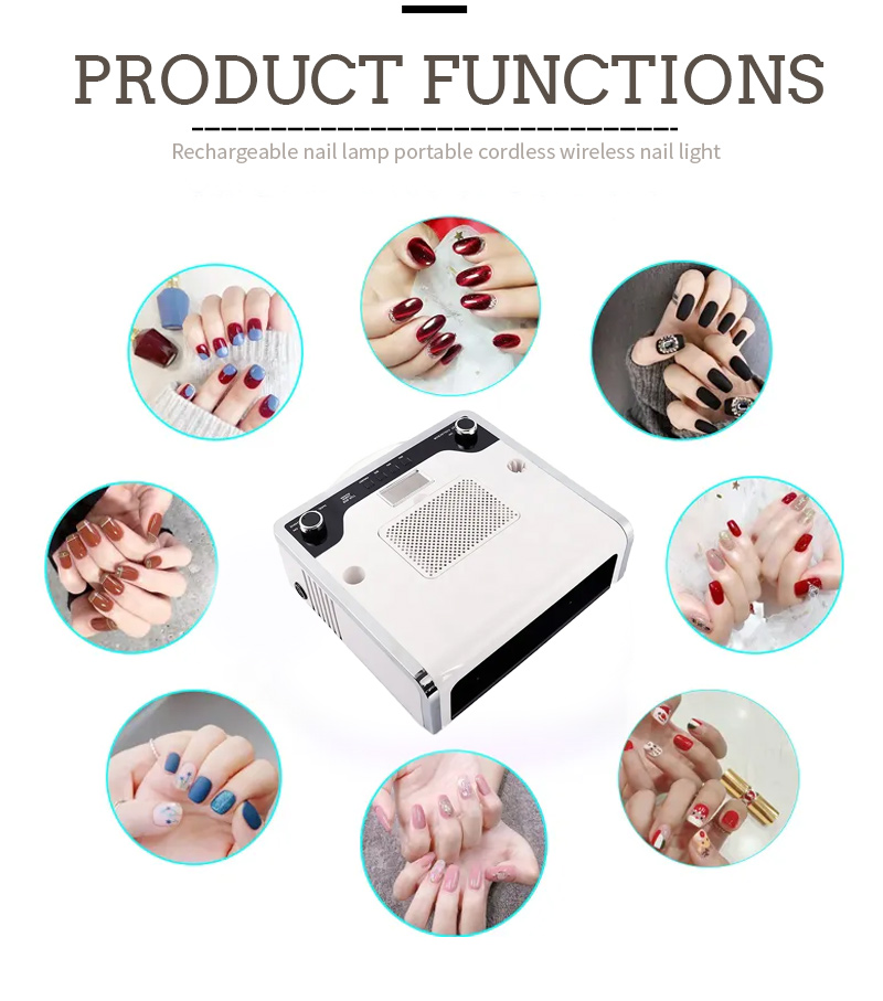Multifunkčná nechtová lampa 4 v 1 zaisťuje rovnomerné schnutie lepidla bez zmršťovania. Jeho dvojité svetelné zdroje poskytujú jemné zahrievanie, aby sa zabránilo zafarbeniu rúk a namáhaniu očí, vhodné pre ruky aj nohy a poskytujú pozoruhodne rýchle výsledky sušenia.