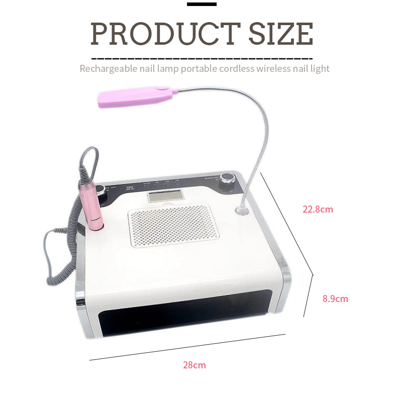 Rozmery tejto multifunkčnej lampy na nechty 4 v 1 sú 280 mm na dĺžku, 228 mm na šírku a 89 mm na výšku, s veľkou kapacitou a možnosťou používať ruky aj nohy, čo je veľmi pohodlné.