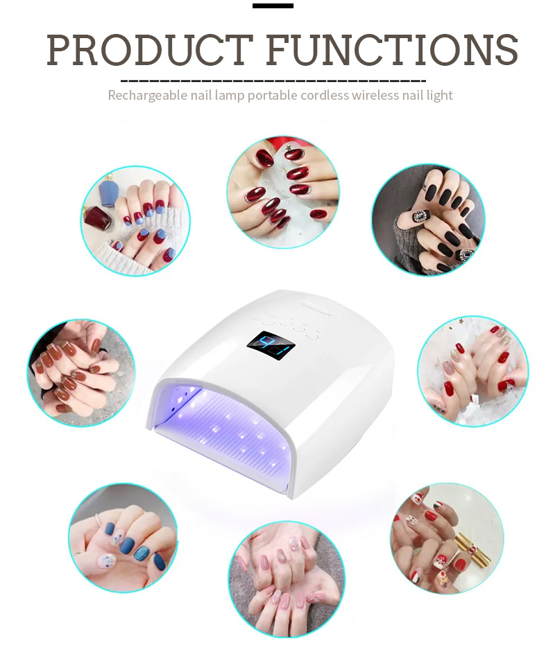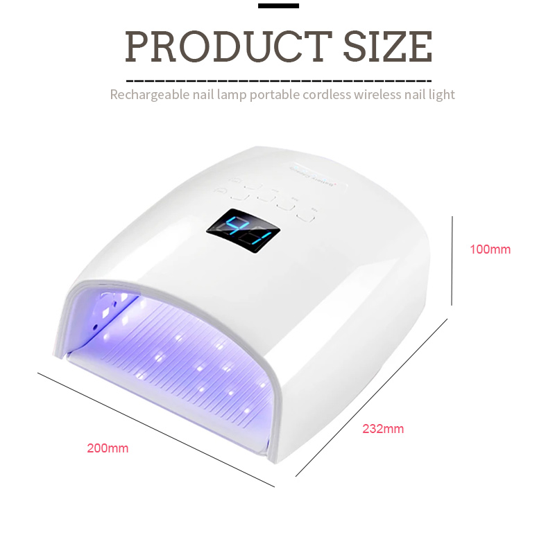 Produkt zaisťuje rovnomerné schnutie lepidla bez zmršťovania. Jeho dvojité svetelné zdroje poskytujú jemné zahrievanie, aby sa zabránilo zafarbeniu rúk a namáhaniu očí, vhodné pre ruky aj nohy a poskytujú pozoruhodne rýchle výsledky sušenia.