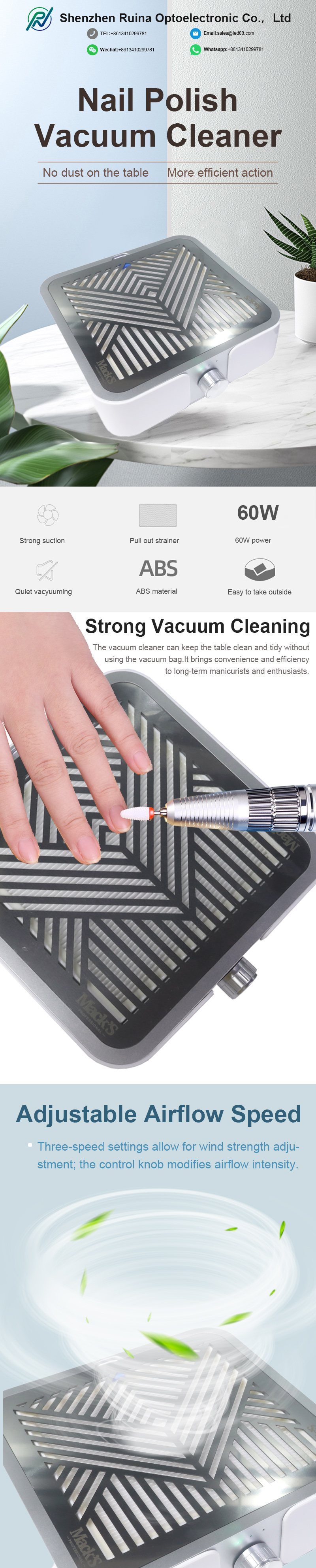 Nový štýl zakrivená priľnavosť hlavy na nechty na nechtyShenzhen Ruina Optoelectronic Co., Ltd. popredný výrobca, dodávateľ a vývozca vysávačov na nechty s nastaviteľnou rýchlosťou v Číne. Dodržiavanie snahy o dokonalú kvalitu produktov, takže s naším odsávačom prachu s nastaviteľnou rýchlosťou bolo spokojných mnoho zákazníkov. Extrémny dizajn, kvalitné suroviny, vysoký výkon a konkurencieschopná cena sú to, čo chce každý zákazník, a to je aj to, čo vám môžeme ponúknuť. Samozrejme, nevyhnutný je aj náš dokonalý popredajný servis.