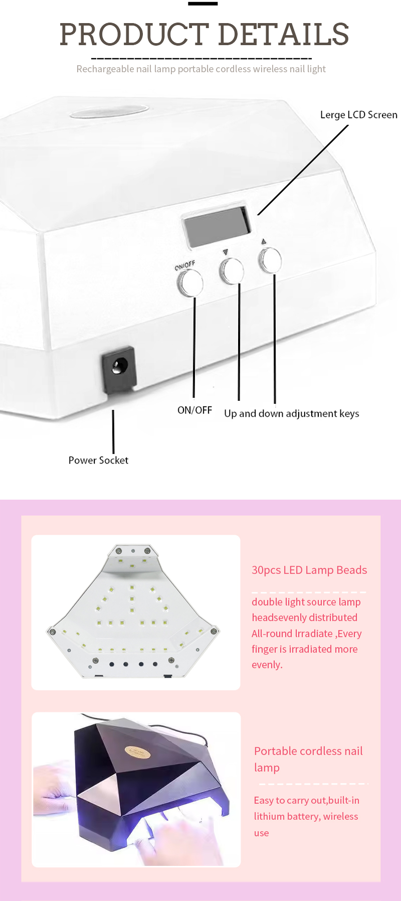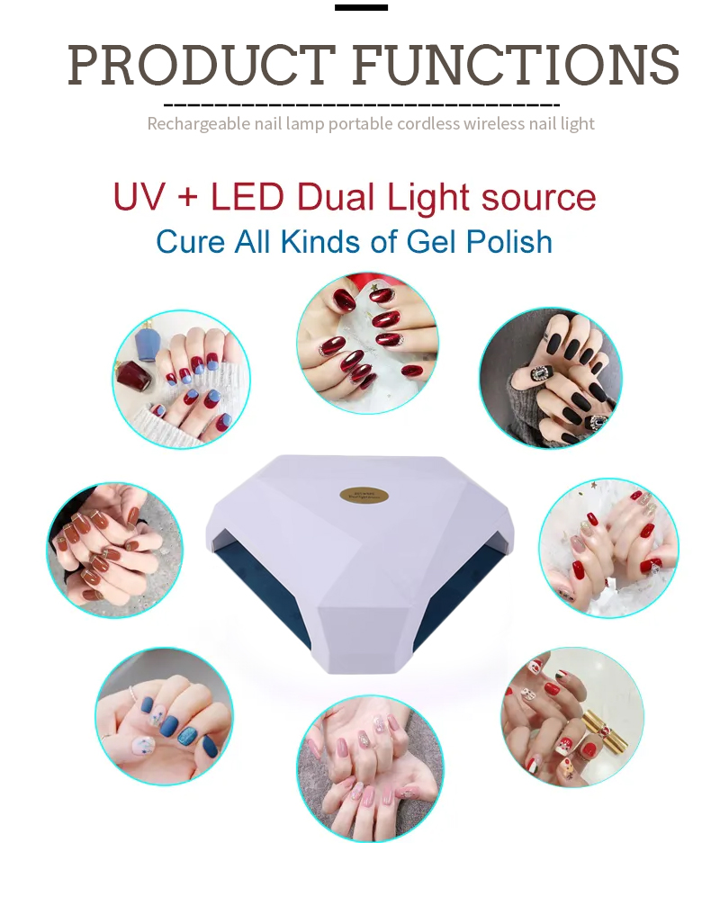 Produkt zaisťuje rovnomerné lepenie sušenia bez zmršťovania. Jeho duálne zdroje svetla poskytujú jemné zahrievanie, aby sa zabránilo sfarbeniu rúk a napätia očí, vhodné pre ruky aj nohy, čo prináša pozoruhodne rýchle sušenie výsledkov.