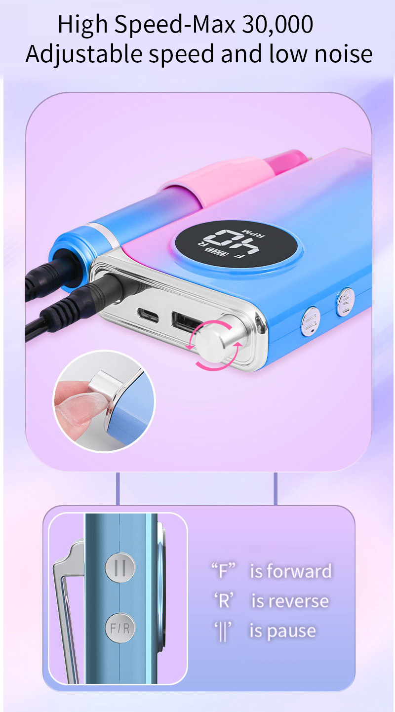 Prenosná súprava vŕtačiek na nechty elektrická s výkonným motorom 65 W 35 000 ot./min