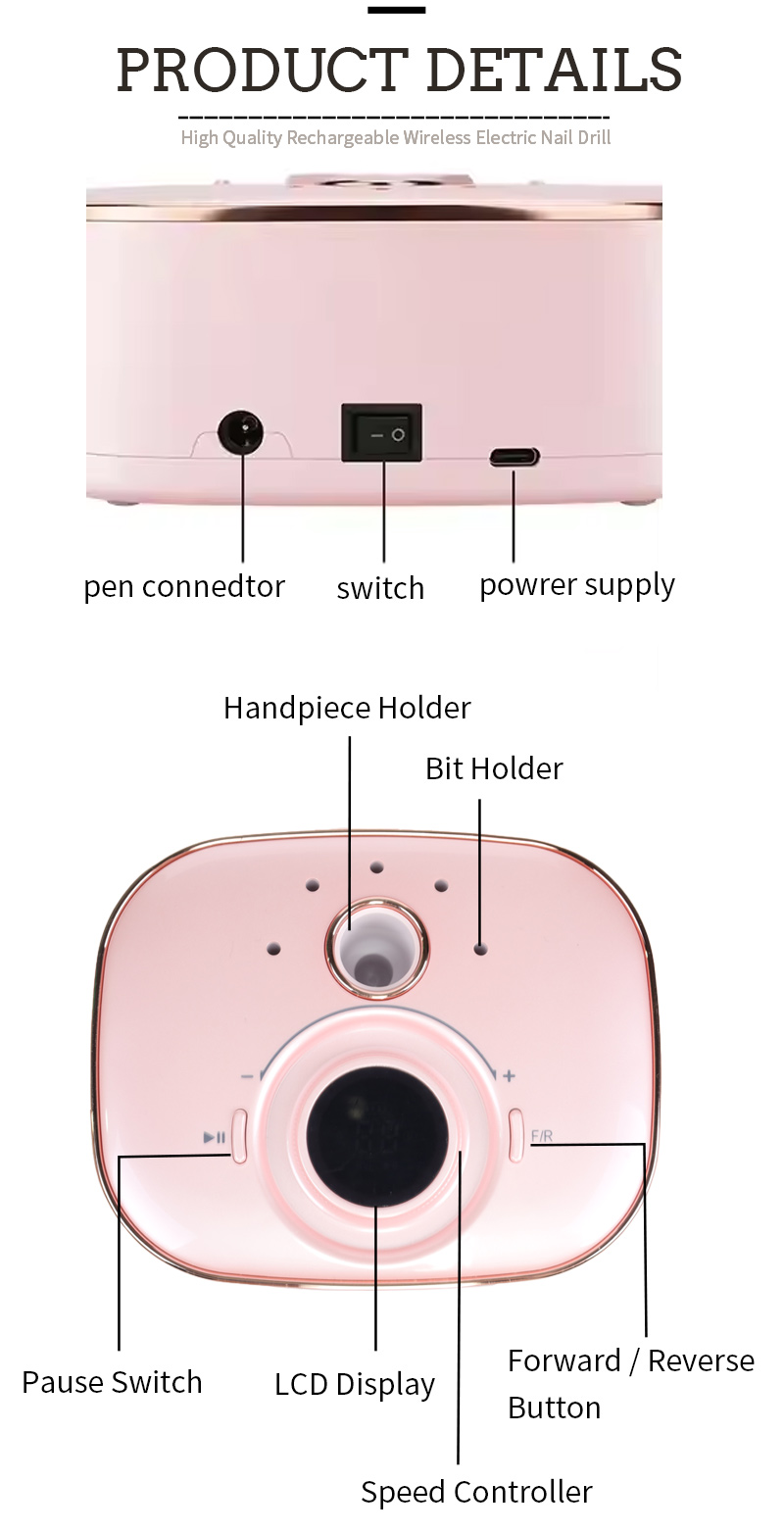 Dobíjacia súprava vŕtačiek na nechty s výkonným násadcom 45 W 35 000 ot./min