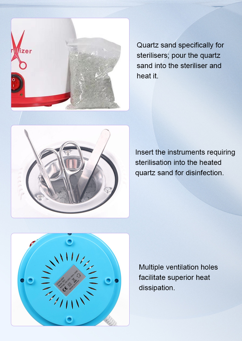 Tento sterilizátor primárne generuje teplo cez vyhrievací prstenec, pričom na dezinfekciu využíva vysoké teploty.
