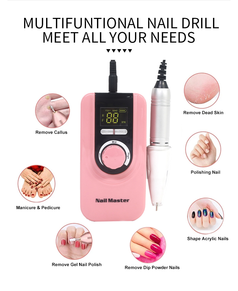 Elektrická vŕtačka na nechty, ktorá sa nedá ľahko poškodiť, 65 W 35 000 ot./min