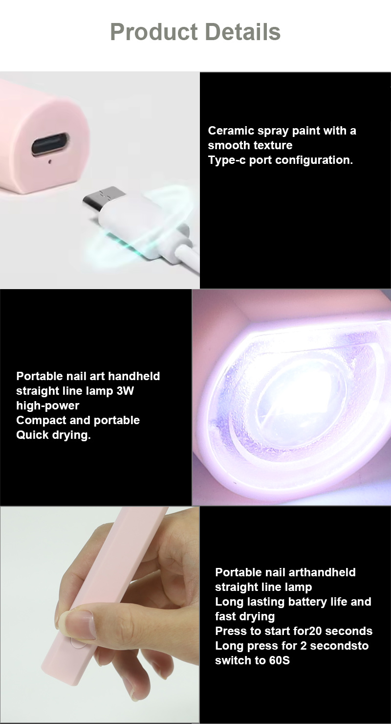 Produkt zaisťuje rovnomerné schnutie lepidla bez zmršťovania. Jeho dvojité svetelné zdroje poskytujú jemné zahrievanie, aby sa zabránilo zafarbeniu rúk a namáhaniu očí, vhodné pre ruky aj nohy a poskytujú pozoruhodne rýchle výsledky sušenia.