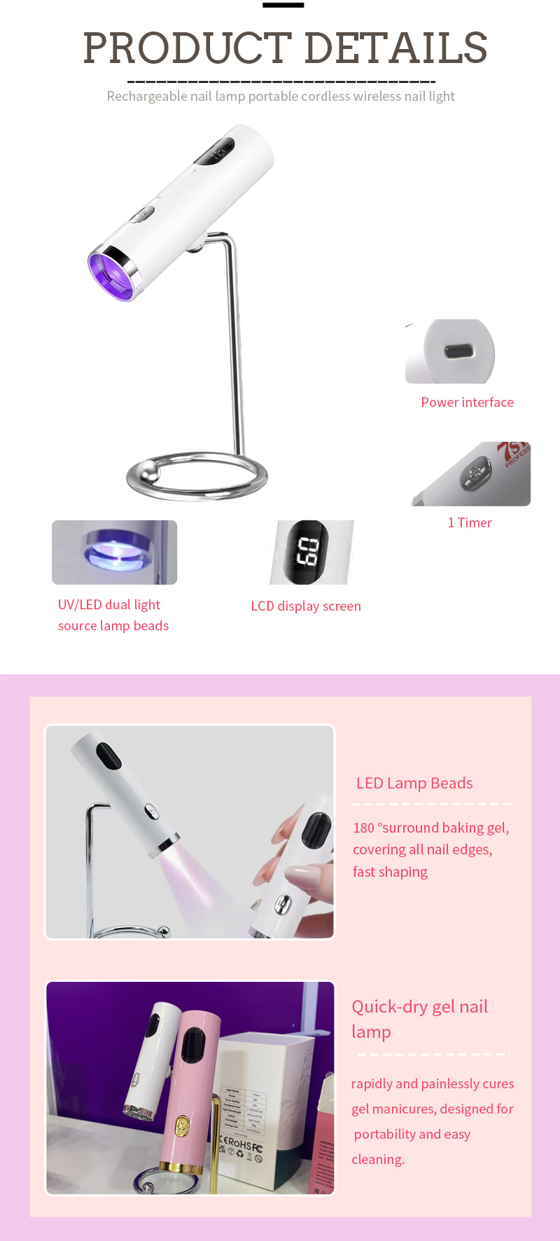 Produkt zaisťuje rovnomerné lepenie sušenia bez zmršťovania. Jeho duálne zdroje svetla poskytujú jemné zahrievanie, aby sa zabránilo sfarbeniu rúk a napätia očí, vhodné pre ruky aj nohy, čo prináša pozoruhodne rýchle sušenie výsledkov.