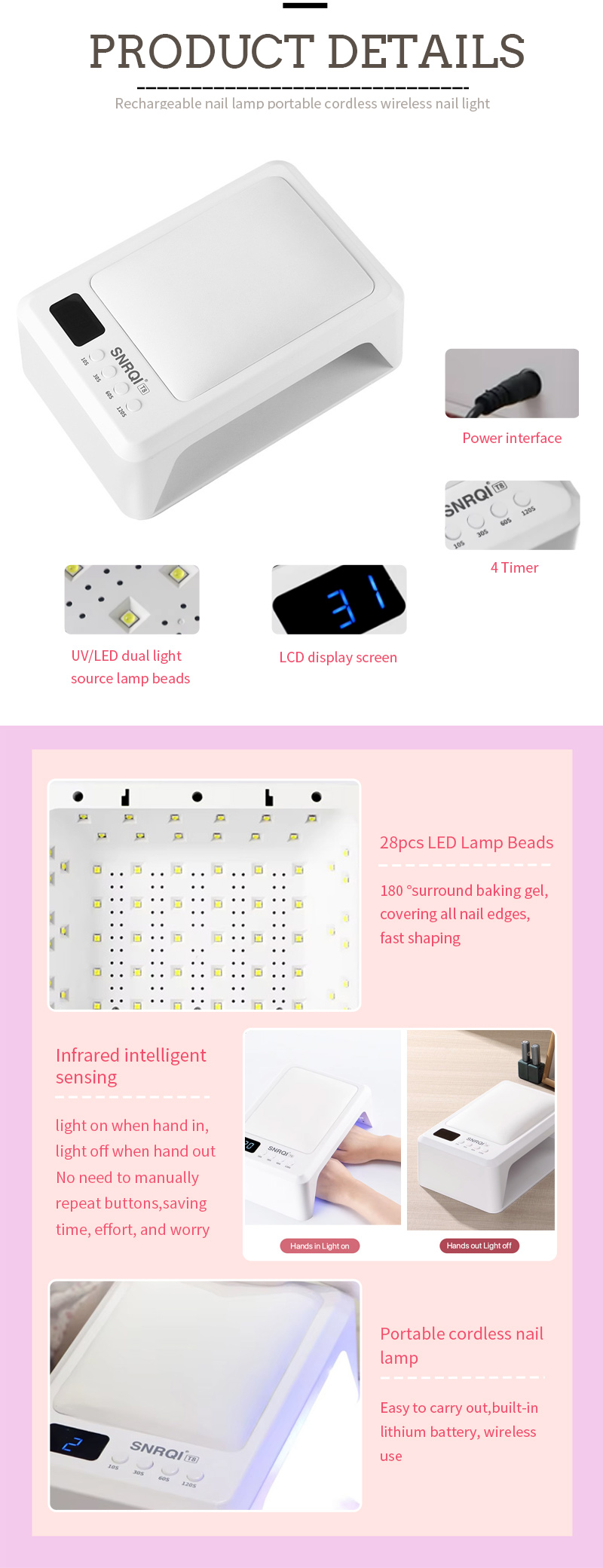Nabíjateľné lampy na nechty Profesionálne verzie 128W Vzhľad produktu má dizajn drážky, rukoväť do drážky sa môže použiť ako prenosná rúva, vďaka čomu je pohodlnejšia prenášanie a umiestnenie. Taktiež sa vyhýba nevýhodám, že rukoväť je ľahko rozbitá a uvoľnená.