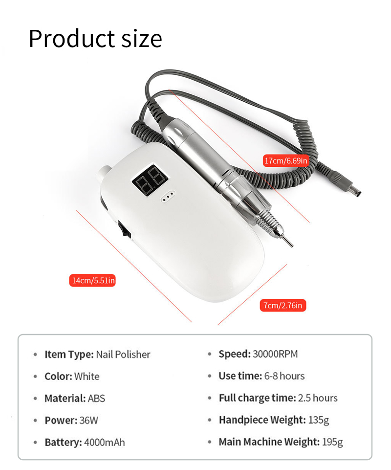 Elektrická vŕtačka na nechty, ktorá sa nedá ľahko poškodiť, 65 W 35 000 ot./min