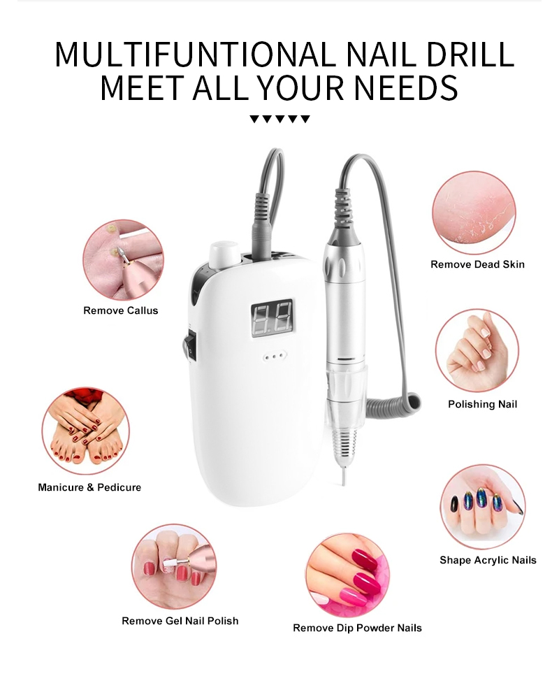 Prenosná súprava vŕtačiek na nechty elektrická s výkonným motorom 65 W 35 000 ot./min