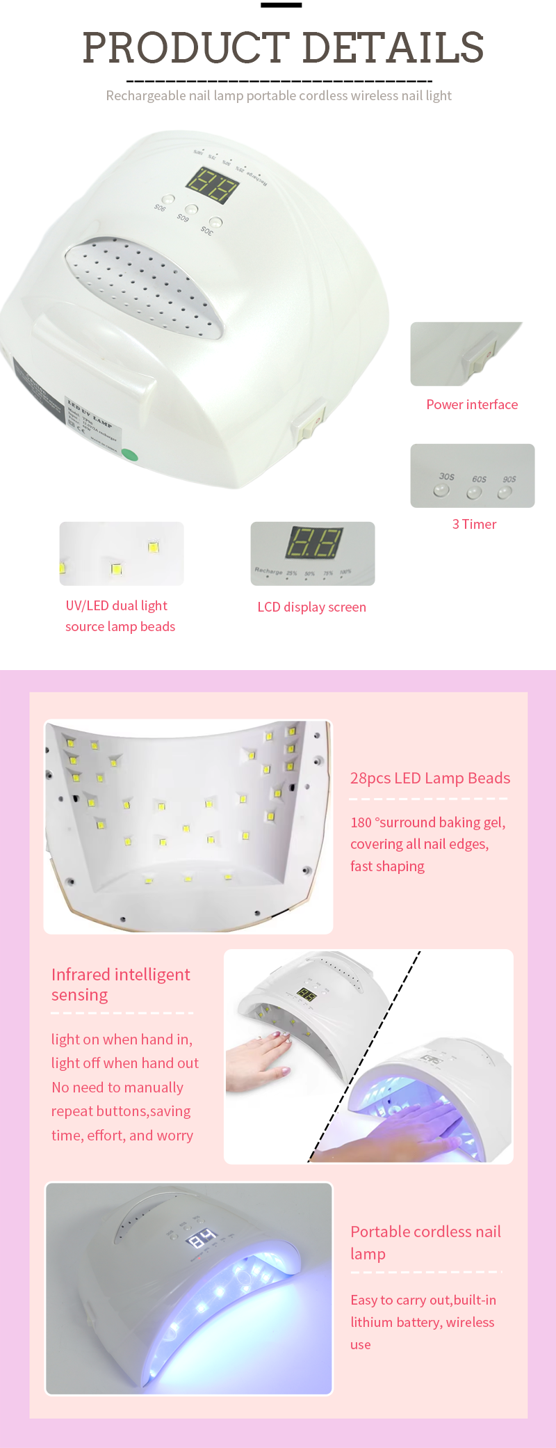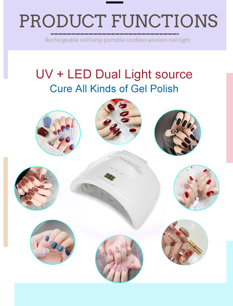 Produkt zaisťuje rovnomerné lepenie sušenia bez zmršťovania. Jeho duálne zdroje svetla poskytujú jemné zahrievanie, aby sa zabránilo sfarbeniu rúk a napätia očí, vhodné pre ruky aj nohy, čo prináša pozoruhodne rýchle sušenie výsledkov.