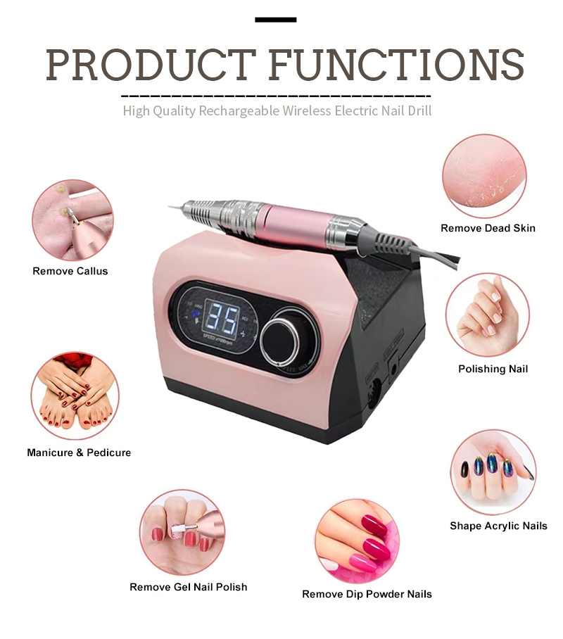 Funkcie produktu a aplikácie vysokorýchlostného 30 000 rpm elektrického súboru nechtov na nechty na odstránenie laku na nechty 717