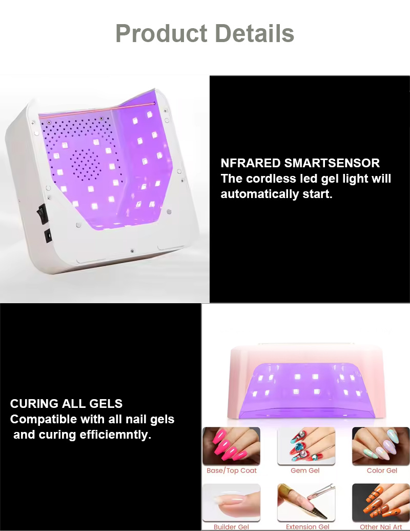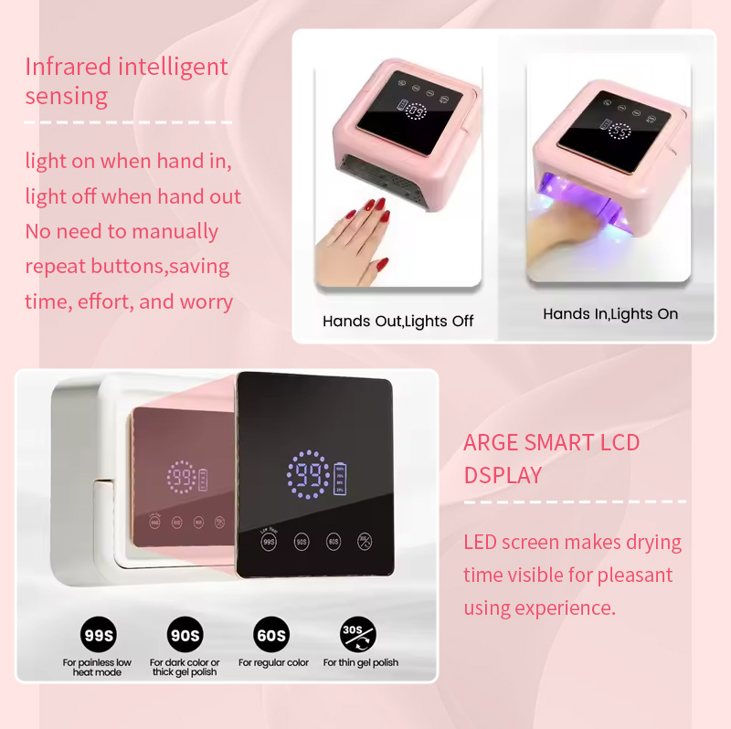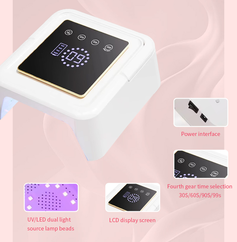 Nový štýl zakrivená priľnavosť hlavy na nechty na nechtyAko profesionálny výrobca vám s potešením ponúkame prispôsobenú novú rýchloschnúcu lampu na gélové nechty. Poskytujeme prémiový popredajný servis a zabezpečujeme včasné dodanie. Tento produkt obsahuje inteligentnú technológiu červeného svetla, ktorá je šetrná k rukám, 5-sekundové rýchle schnutie, veľký dotykový displej a podporuje funkcie časovača. Vďaka intuitívnemu ovládaniu pomocou tlačidiel a komplexnému návodu na obsluhu ho bez námahy zvládnu aj úplní začiatočníci.