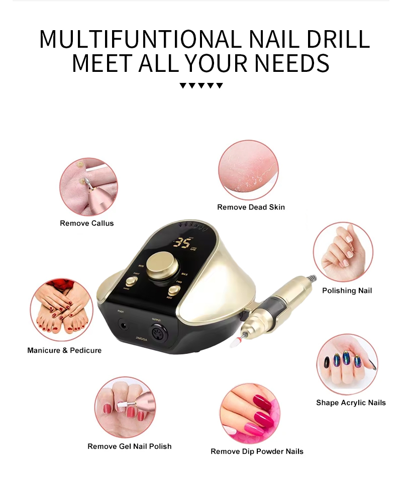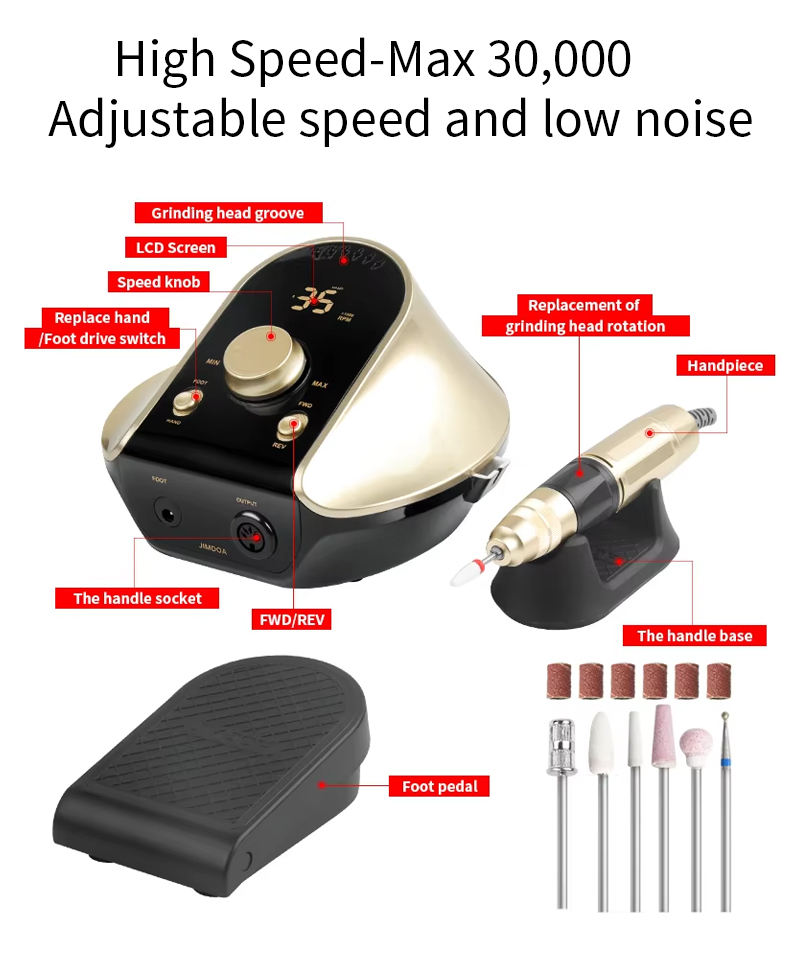 Elektrická vŕtačka na nechty, ktorá sa nedá ľahko poškodiť, 65 W 35 000 ot./min