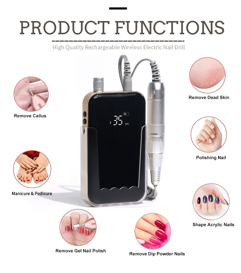 Elektrická vŕtačka na nechty, ktorá sa nedá ľahko poškodiť, 65 W 35 000 ot./min