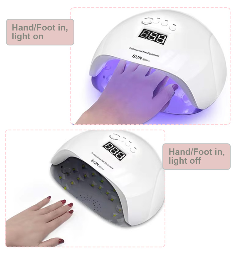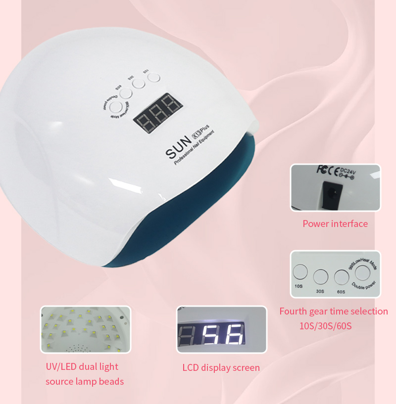 Produkt zaisťuje rovnomerné schnutie lepidla bez zmršťovania. Jeho dvojité svetelné zdroje poskytujú jemné zahrievanie, aby sa zabránilo zafarbeniu rúk a namáhaniu očí, vhodné pre ruky aj nohy a poskytujú pozoruhodne rýchle výsledky sušenia.