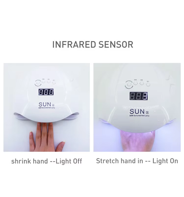Rýchloschnúca lampa na gélové nechty je vybavená infračervenou technológiou inteligentného snímania, ktorá sa automaticky rozsvieti, keď sa ruky priblížia, a zhasne, keď sa ruky vzdialia, čím sa eliminuje problém s opakovaným stláčaním tlačidiel a šetrí sa čas a námaha. Vysokovýkonné lepidlo na pečenie nevyžaduje žiadne zdĺhavé čakanie, čo šetrí čas aj námahu.