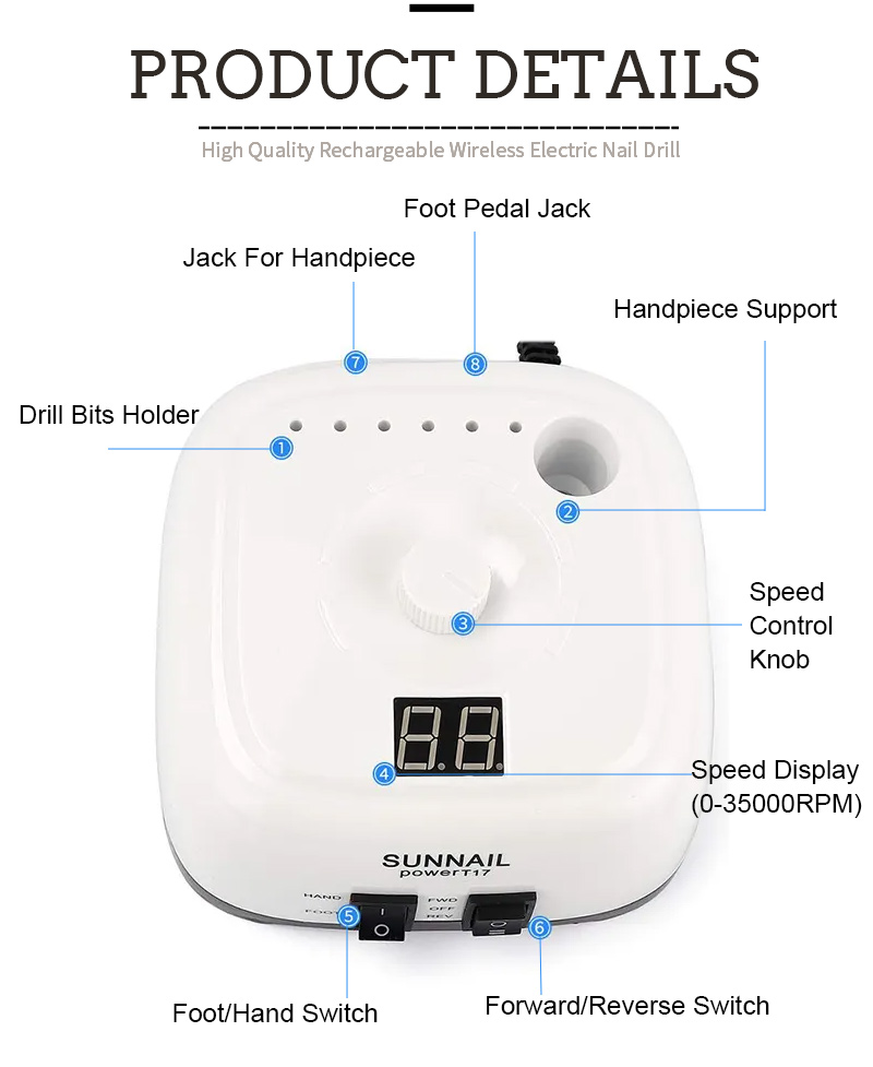 Funkcia produktu a aplikácia vysokorýchlostného 35 000 rpm na nechty na nechty T17 T17