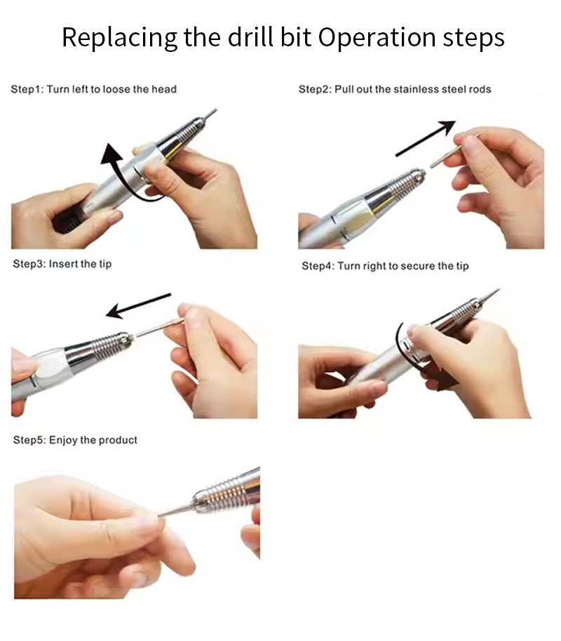 Dobíjacia súprava vŕtačiek na nechty s výkonným násadcom 45 W 35 000 ot./min