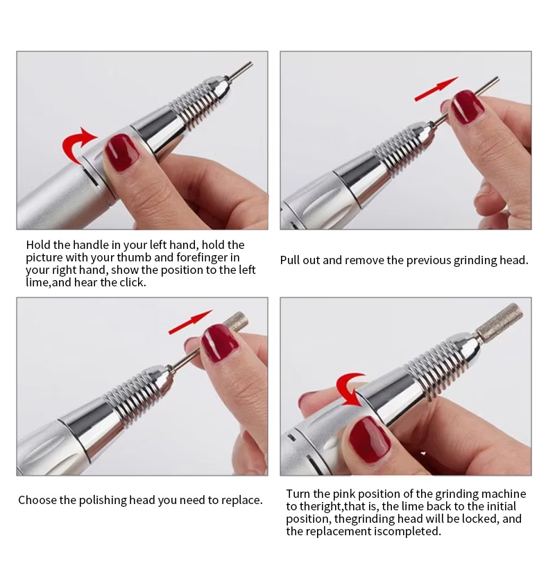 Túto bezdrôtovú elektrickú vŕtačku na nechty s 35 000 otáčkami za minútu výmennou vŕtačkou, to znamená jednoduchou a pohodlnou výmenou zasunúť a vytiahnuť, možno použiť po dokončení.